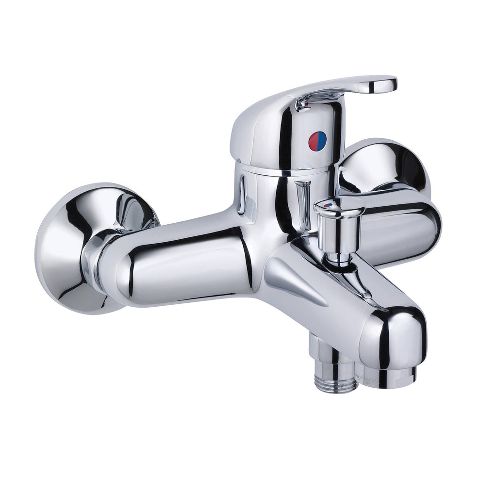 Grifo de bañera con cuerpo de latón y maneta metálica.